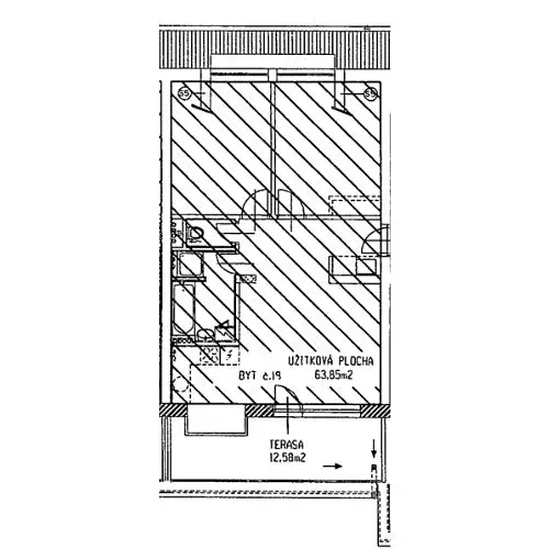 Byt o celkové užitné ploše 63,85 m² + terasa 12,58 m² je řešen velmi účelně, aby každý metr dával smysl. Příjemnou atmosféru interiéru dokreslují plovoucí podlahy v obytných místnostech.