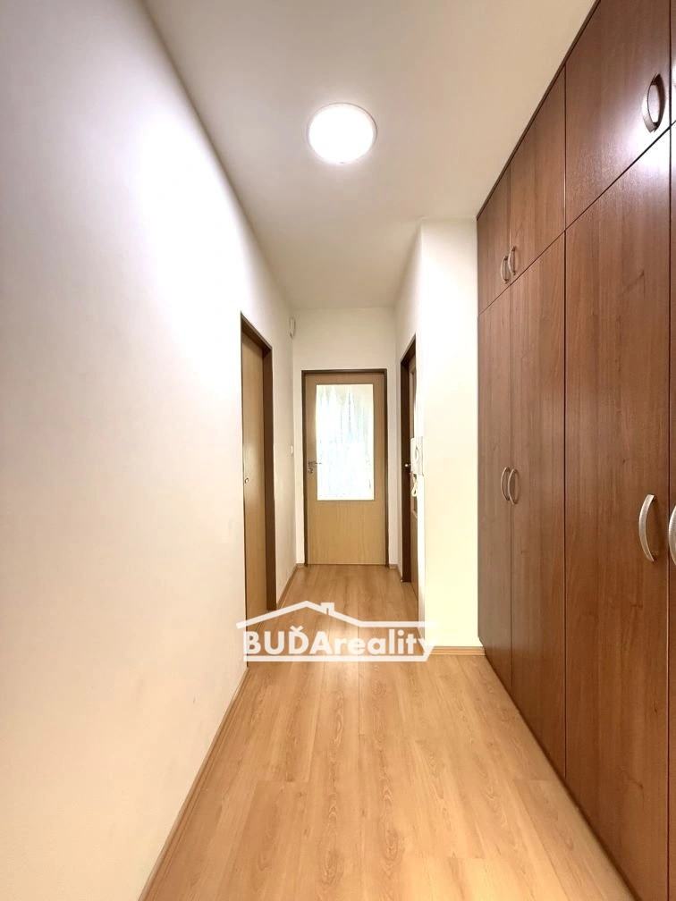 Prostorný byt v 3. podlaží splňuje požadavky moderního bydlení. Disponuje vstupní chodbou se skříněmi na míru, ze které vstoupíte do všech místností v bytě. U vstupu se nachází komora, která částečně slouží místo sklepní kóje. Na konci chodby je vstup do ložnice a kuchyně s obývacím pokojem. Kuchyň je vybavena prostornou kuchyňskou linkou s vestavěnými el. spotřebiči, varnou deskou, troubou a digestoří. Kuchyň je propojená s obývacím pokojem. Prostorná koupelna disponuje vanou, wc , umyvadlem a přípojkou na pračku. Podlahy - dlažba, plovoucí podlaha a na oknech jsou vnitřní okenní žaluzie. Velkou výhodou domu je vlastní plynový kotel a možnost parkování na uzavřeném venkovním prostoru za domem, kde je vjezd pouze na dálkové ovládání el.brány. Nabízí v budoucnu možnost pronájmu či koupě parkovacího místa za domem nebo garáže. V přízemí je místnost pro kočárky a kola, které jsou k bytu k užívání.