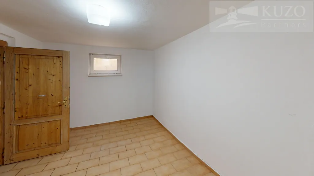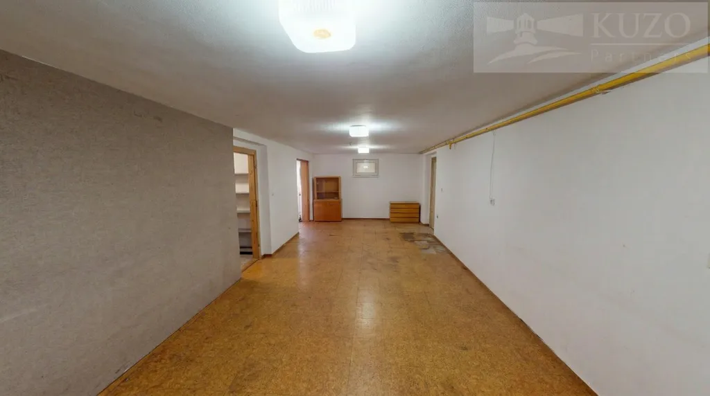 Velkorysý prostor: Dominantou je obrovská obytná místnost, doplněná o další 3 pokoje (jeden z nich není napojen na ústřední topení a je vhodný spíše jako dílna, sklad nebo k vytápění samostatným přímotopem).