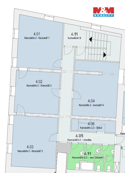 Nabízíme k pronájmu lukrativní kancelářské prostory ve zcela zrekonstruovaném historickém objektu – Starý mlýn, vhodné jako kanceláře, sídlo firmy, coworking, salony krásy. Konkrétně tyto kanceláře se nachází ve 4.NP a jsou vhodné pro administrativní činnost, služby. Jejich velikost je od 19 m2 do 26 m2, celková výměra kanceláří je 89 m2. Cena nájmu je za celé patro. Na patře se nachází také sociální zázemí. Kauce je tříměsíční. Bez poplatku RK.