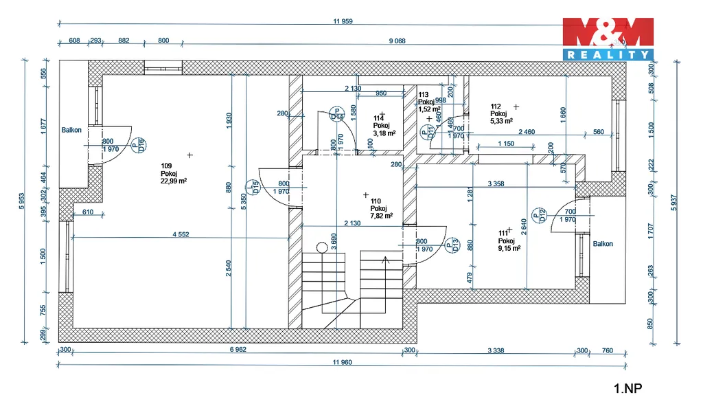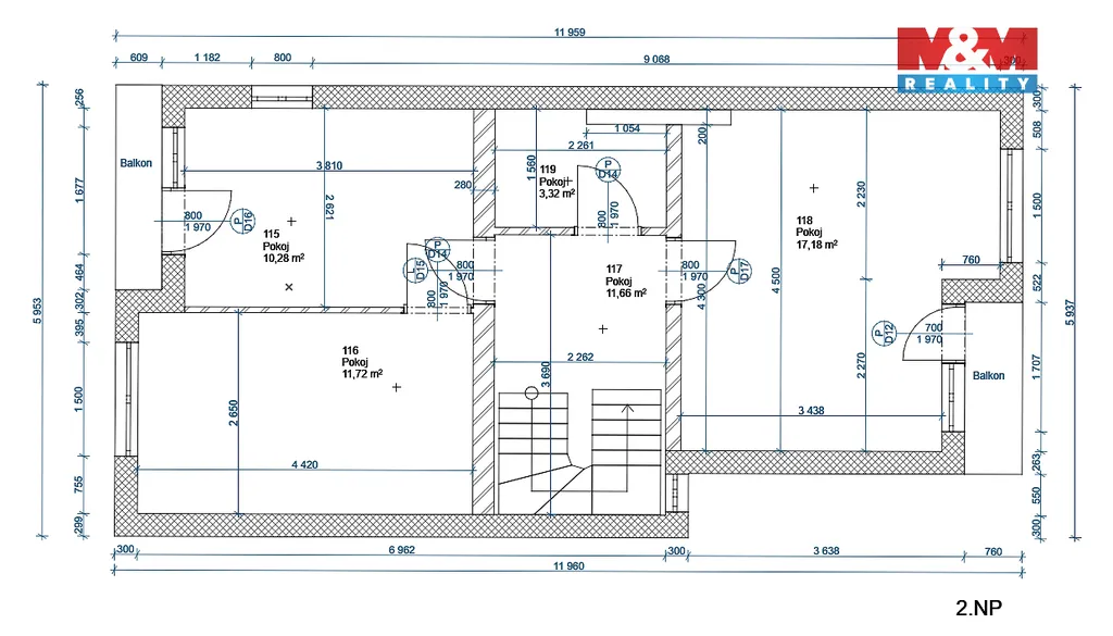 V suterénu se nachází garáž, technická místnost, kolárna, dílna a přímý vstup na zahradu. Další dvě nadzemní podlaží mají identickou dispozici – obývací pokoj s kuchyní, koupelnu, dvě ložnice a dva balkony.