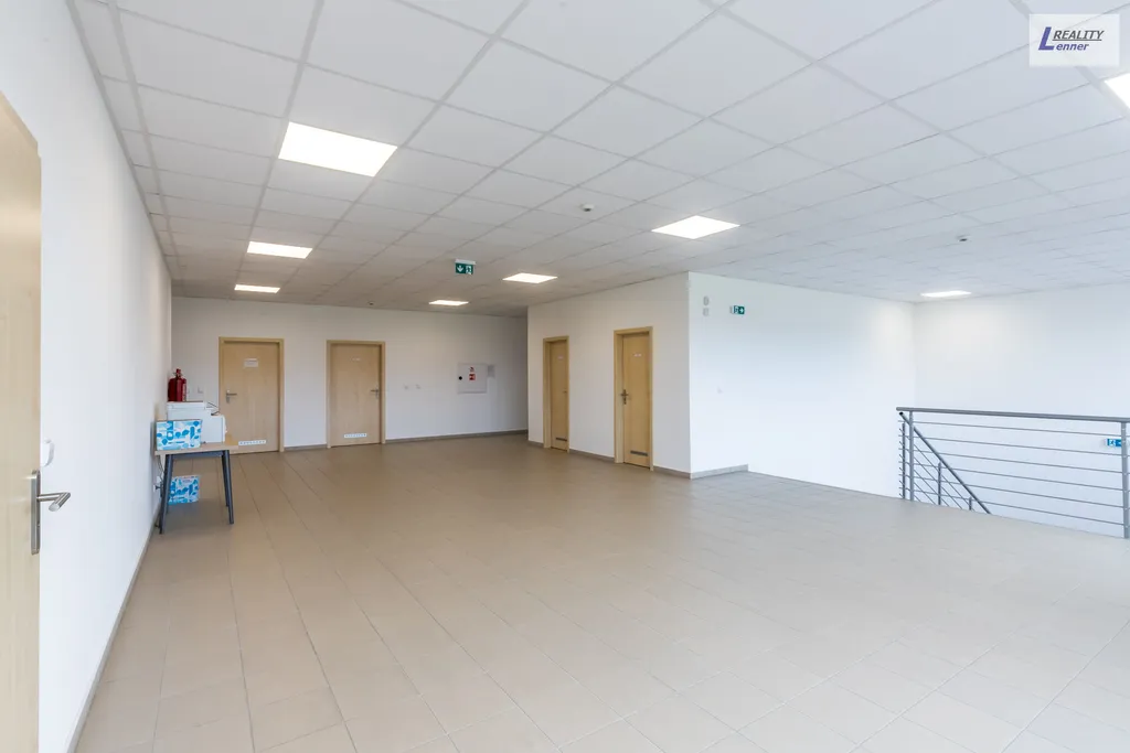 V první patře areálu se nachází cca 300 m2 kancelářských prostor a příslušenství: oddělení nákupu, oddělení kvality, vedoucí výroby, kancelářské místnosti, 3 archiv, zasedací místnost, serverovna, kuchyňka atd.