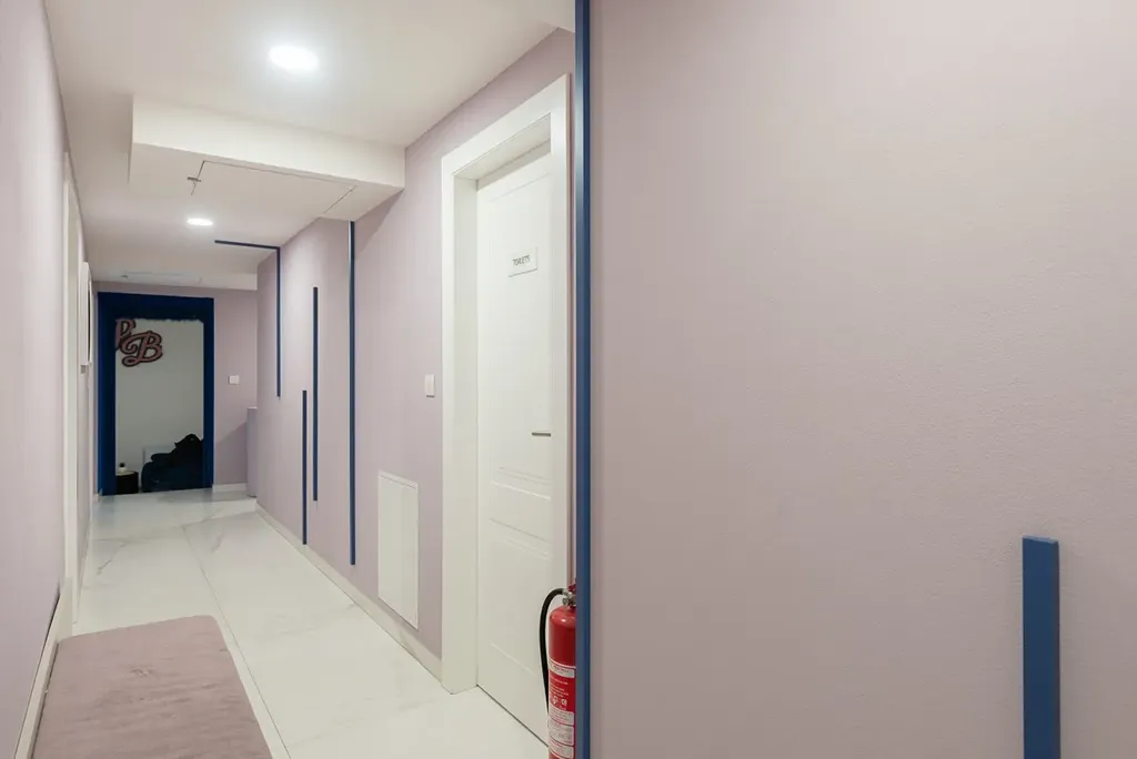 Interiér prošel velmi kvalitní úpravou a působí moderním, čistým a profesionálním dojmem. Aktuálně je prostor využíván jako beauty salon a kadeřnictví, čemuž odpovídá i dispozice – několik samostatných místností pro péči o klienty, otevřenější části s kadeřnickými křesly, zázemí pro personál, kuchyňka, technická místnost i vlastní sociální zařízení. Vše je řešeno s důrazem na detail, estetiku i praktičnost. Světlé podlahy, jemné barevné tóny, dostatek úložných prostor a promyšlené rozdělení jednotlivých částí vytvářejí příjemné prostředí jak pro klienty, tak pro personál.