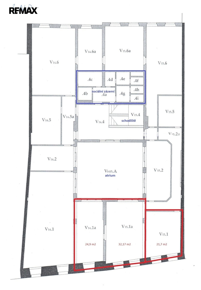 Aktuálně tu jsou kanceláře o výměře 25 m2, 32 m2 a 22 m2. Po domluvě s majitelem lze i prostory sloučit, nebo jinak upravit.