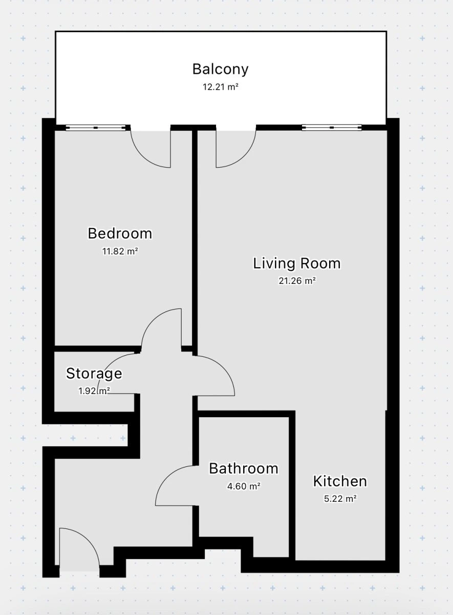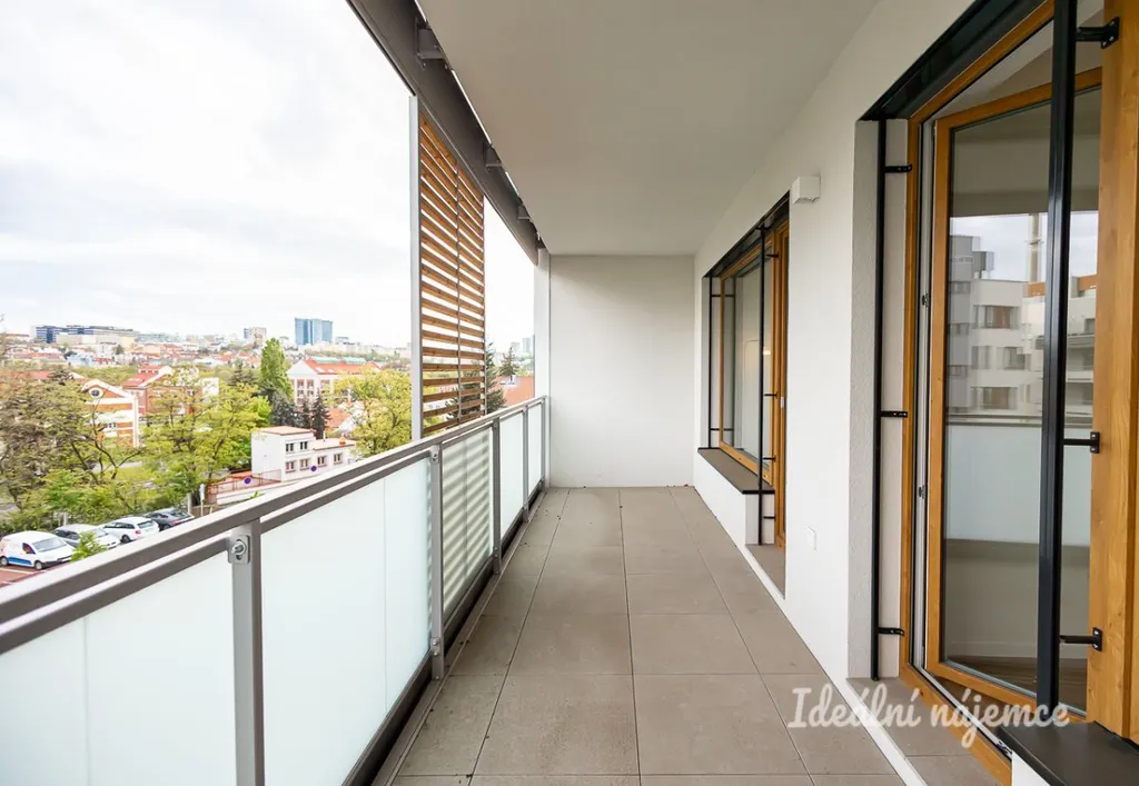 Kuchyně je vybavena indukční varnou deskou, vestavnou troubou, recirkulační digestoří a myčkou. Z obývacího pokoje a ložnice je vstup na balkon.