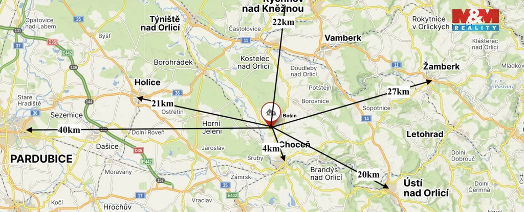 Prodej louky o výměře 799 m² v katastrálním území Bošín u Chocně.