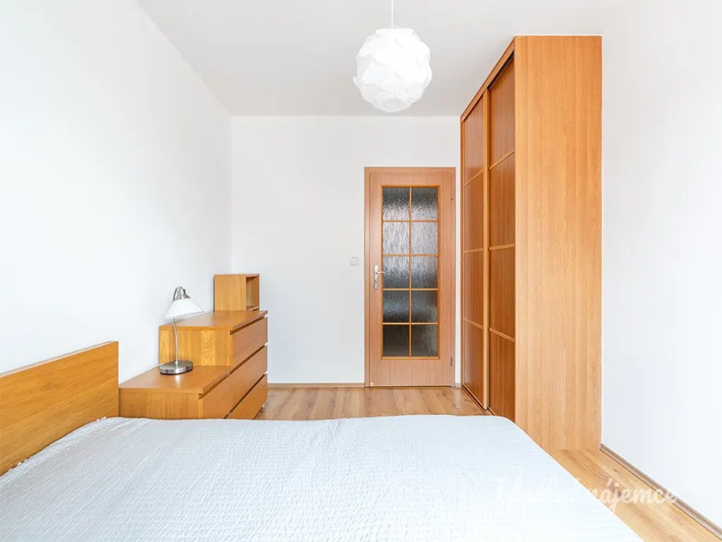 Byt se nachází ve 3.patře velmi klidného, cihlového domu. Skládá se ze vstupní chodby s velkou vestavnou skříní. Dále je tu ložnice kompletně zařízena ložnice, koupelna s velkou rohovou vanou, pračkou a umyvadlem, obývací pokoj a kuchyně. Toaleta je umístěna samostatně.