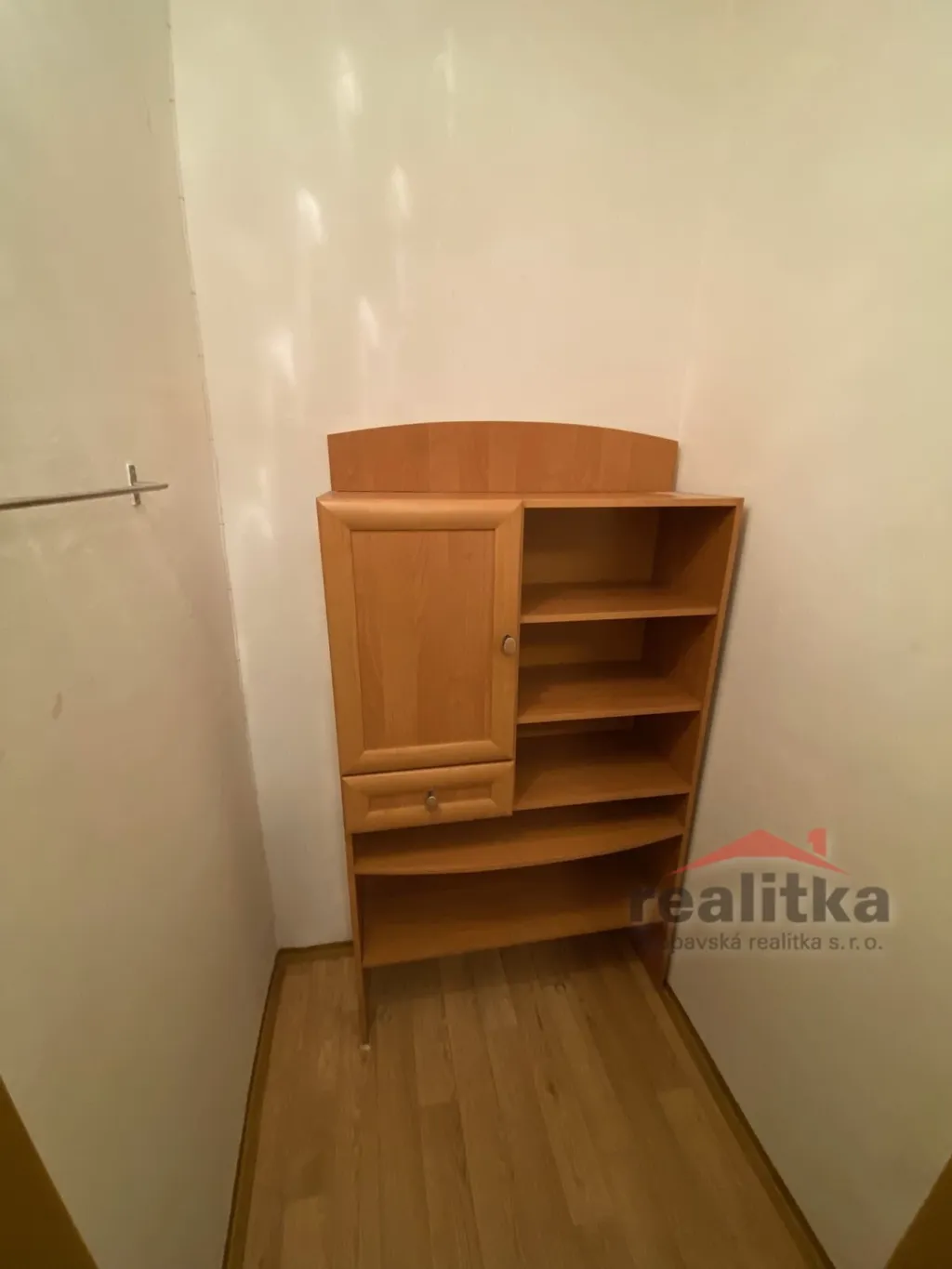 Dispozice bytu zahrnuje předsíň, koupelnu se sprchovým koutem, samostatné WC, kuchyň s kuchyňskou linkou, obývací pokoj a komoru. Byt má plastová okna včetně žaluzií. Vytápění je řešeno centrálním ústředním topením.
