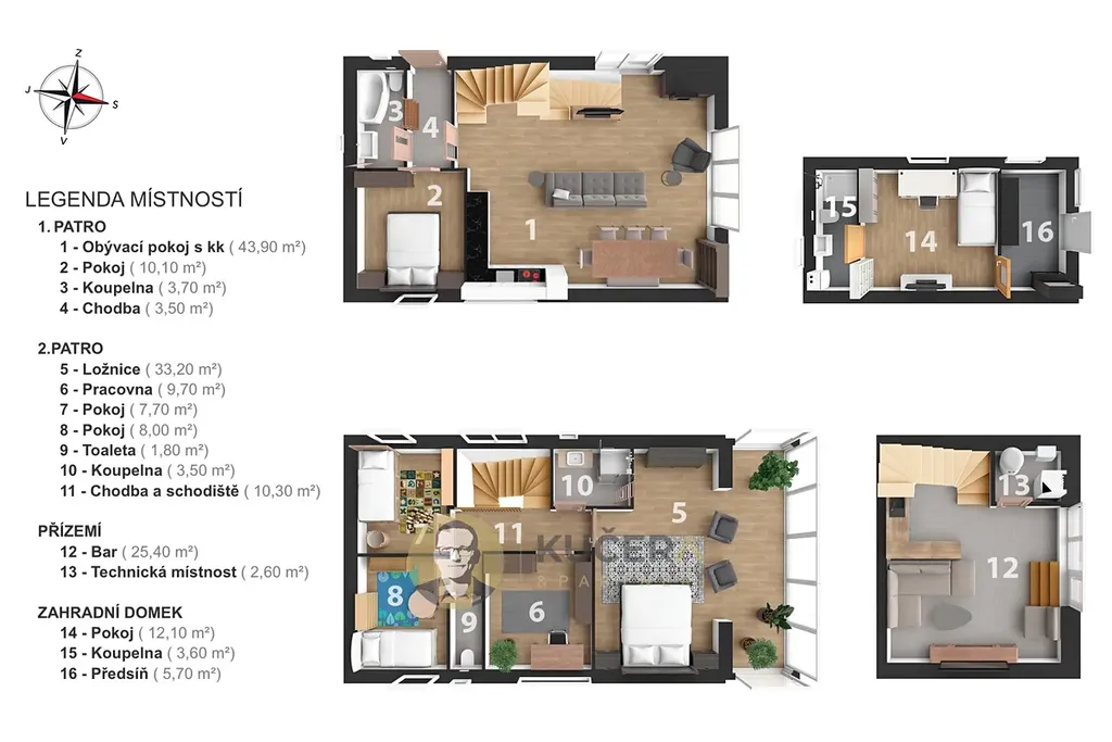 - Dispozice domu 7+1 a navíc obyvatelný zahradní domek