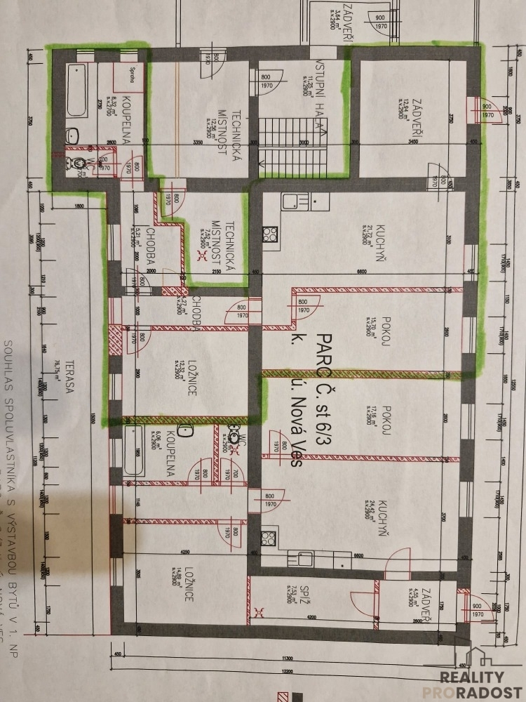 Nabízíme vám výhradně budoucí prodej nově rekonstruovaného bytu o dispozici 3+kk v rodinném domě o třech bytových jednotkách s podílem na domě a pozemku v obci Nová Ves u Litovle. Byt s podlahovou plochou bytu 80,48 m2 se nachází v přízemí domu a patří k němu i zahrádka vč. kůlny o velikosti 40 m2. Vrchní patro domu je odděleno a je zde vlastní vstup do domu a na zahradu. Konstrukce v 1. patře jsou tvárnice, přízemí domu je smíšené zdivo - pálená cihla a suchá vepřovice. Dům je zateplen polystyrenem. Vytápění bytu novým elektrickým kotlem, na kterém lze ovládat vytápění od 2 kW - 14 kW dle potřeby. Ohřev vody - nový elektrický bojler. V bytě je nově vybudováno - elektřina, topení, voda, vnitřní nové omítky, stupačky, betonová podlaha vylitá nivelační stěrkou, plastová okna, radiátory. Co se týká dalšího dovybavení bytu, tak současný majitel nabízí možnost dobudování pro nového vlastníka a to za velmi příznivou cenu dle výběru materiálu a podobně. Jedná se například o podlahy, kuchyň, koupelnu (počítá se tam s vanou, WC, umyvadlem, sprchovým koutem). Vstupní dveře jsou nové bezpečnostní. Přední strana domu s orientací na Jih jsou kvalitní dřevěná okna dvojskla. Zadní strana domu s orientací na sever jsou plastová okna trojskla. Každý byt v domě má samostatné měřiče. Vrchní patro v domě již obývá velmi příjemná rodina. V současné době se řeší rekonstrukce posledního sousedního bytu v domě, která bude rovněž nabídnuta posléze ke koupi. Součástí koupě bude vlastní parkovací místo podélné s výměrou 2,5 m x 6m, které se ještě bude stavět. Jelikož si projekt vyžádal drobné úpravy, řeší se kolaudace, která bude dokončena v brzké době. Půdorys bytu je přiložen ve fotografiích, je ohraničen zeleně. Jedná se o klidnou lokalitu s dobrou dostupností do okolních měst a vzdáleností do Litovle 6 km, Olomouce 20 km, Mohelnice 17 km. V případě zájmu o další informace ohledně prodeje a výhodného financování kontaktujte realitního zprostředkovatele. PENB tř. B - velmi úsporná.