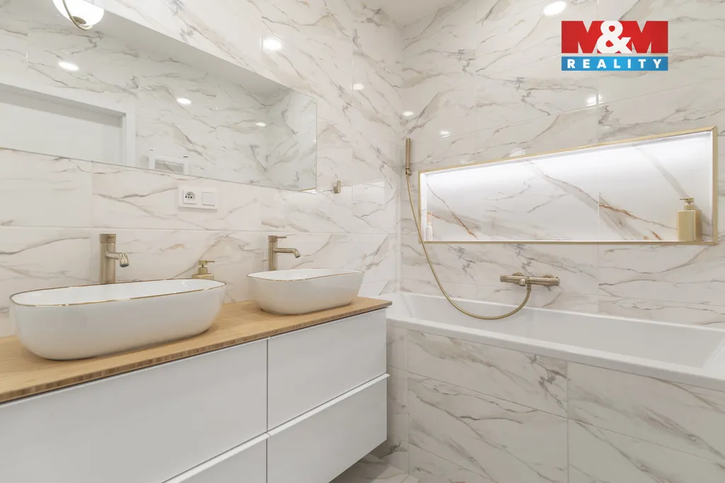 Exkluzivně nabízíme k prodeji byt v osobním vlastnictví o velikosti 4+1, s lodžií, o celkové výměře 86 m2, po velice pečlivé, designové, do detailu zhotovené rekonstrukci. Byt se skládá z kuchyně s vestavnými spotřebiči a velkým množstvím úložných skříněk, na ni navazujícího prostorného obývacího pokoje s jídelním stolem a dále tří ložnic, z nichž první slouží jako manželská ložnice, druhá jako dětský pokoj a třetí má nyní funkci dámské šatny s kosmetickým stolkem. Velkoryse pojatá koupelna disponuje dvěma umyvadly, sprchovým koutem i vanou. Hned vedle koupelny je samostatné WC. Další úložné prostory se pak nacházejí v předsíni, tak jako i dvě menší komory, ve kterých jsou umístěny pračka se sušičkou a v druhé technické zázemí. K dispozici je také nadstandardně velký sklep s možností uložení kočárku, kol atd. Dostupnost MHD, tak jako blízkost školek, škol i veškerých služeb je samozřejmostí.