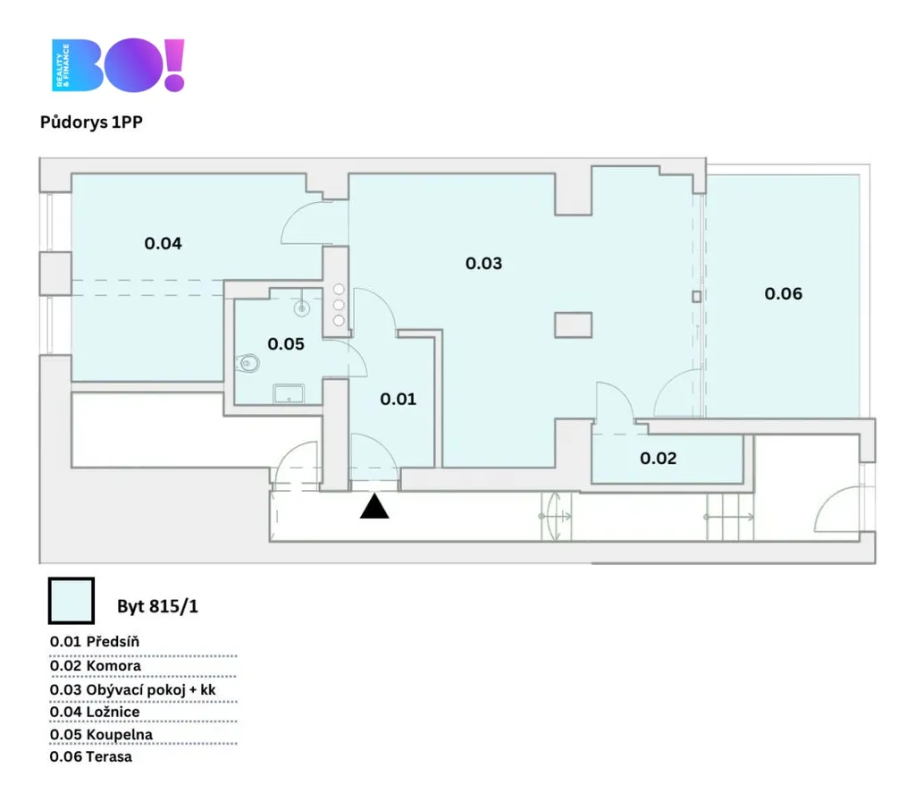 • Byt 1: 57,27 m² + lodžie 15,6 m²