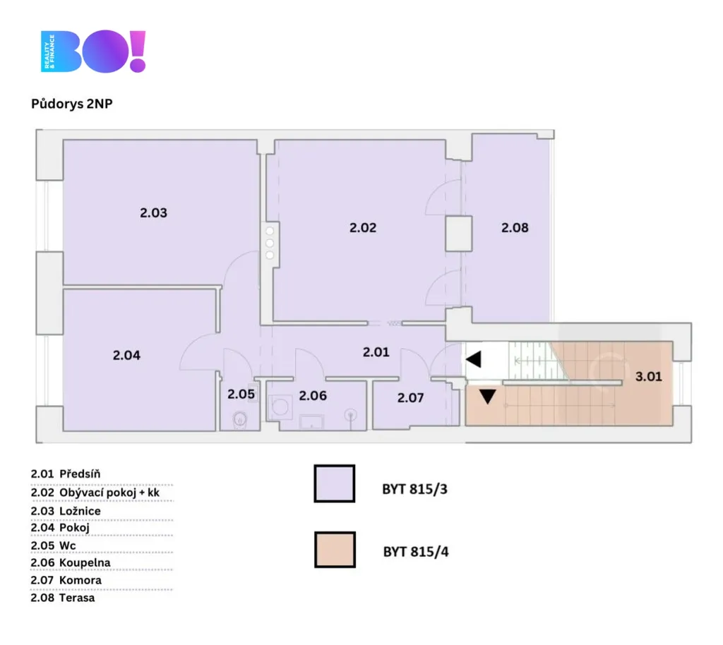 • Byt 2: 60,50 m² + balkon 1,8 m²