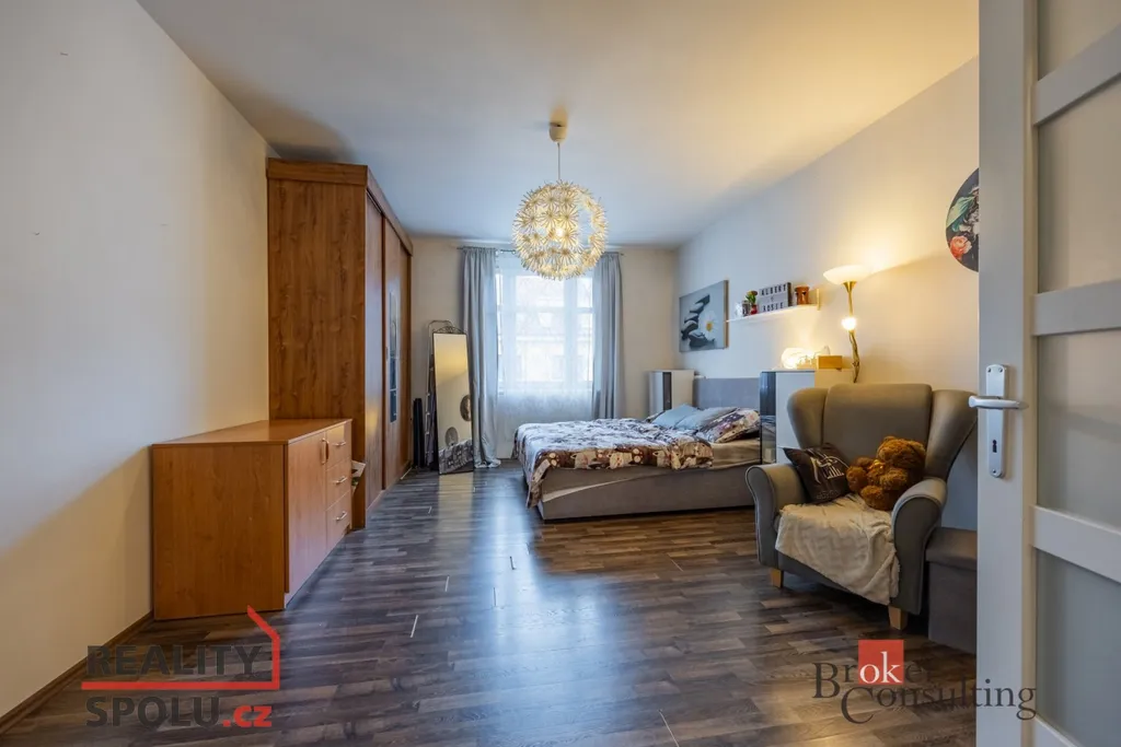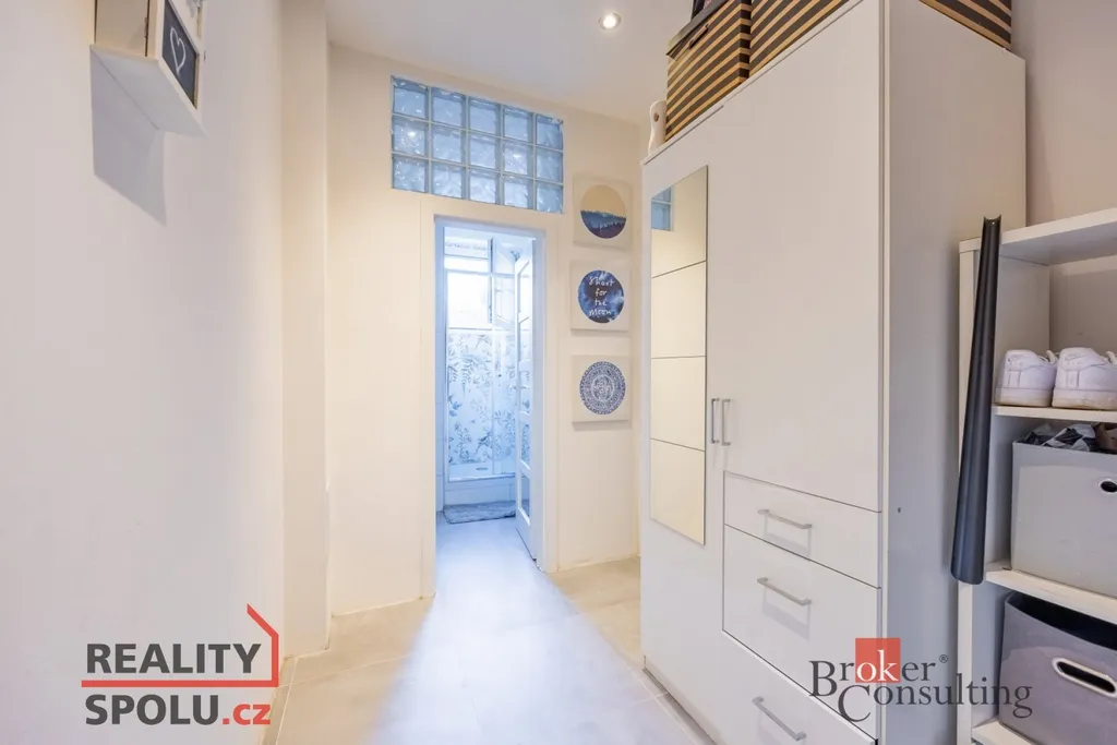 Obývací část s kuchyní vytváří příjemný společný prostor pro každodenní fungování i posezení s přáteli. Kuchyňská linka je prakticky uspořádaná a navazuje na jídelní kout. Samostatný pokoj nabízí dostatek místa pro ložnici, případně kombinaci ložnice a pracovny. Koupelna je nově obložená moderním obkladem, působí čistě a současně a je vybavena sprchovým koutem, toaletou a prostorem pro pračku.