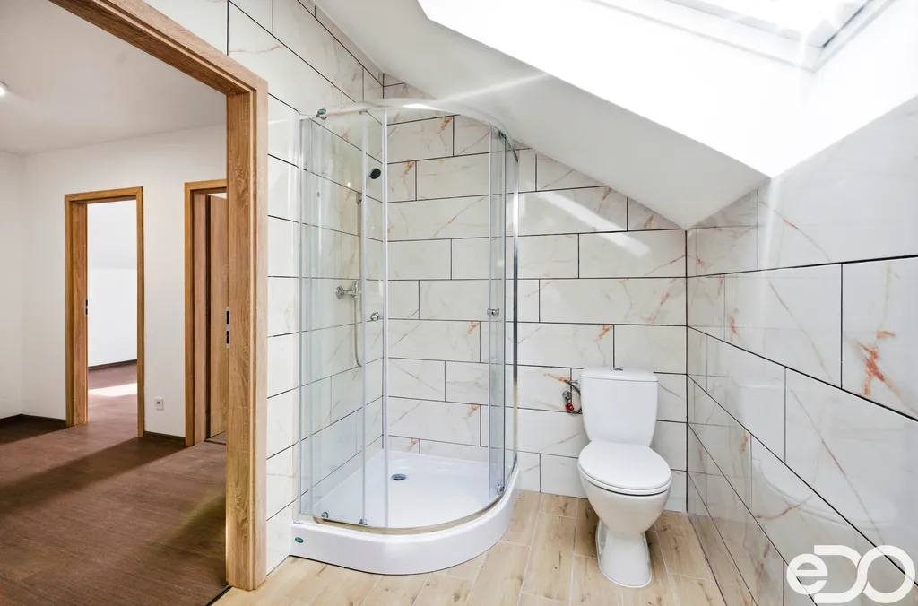2NP - tři podkrovní ložnice, komora a koupelna se sprchovým koutem.