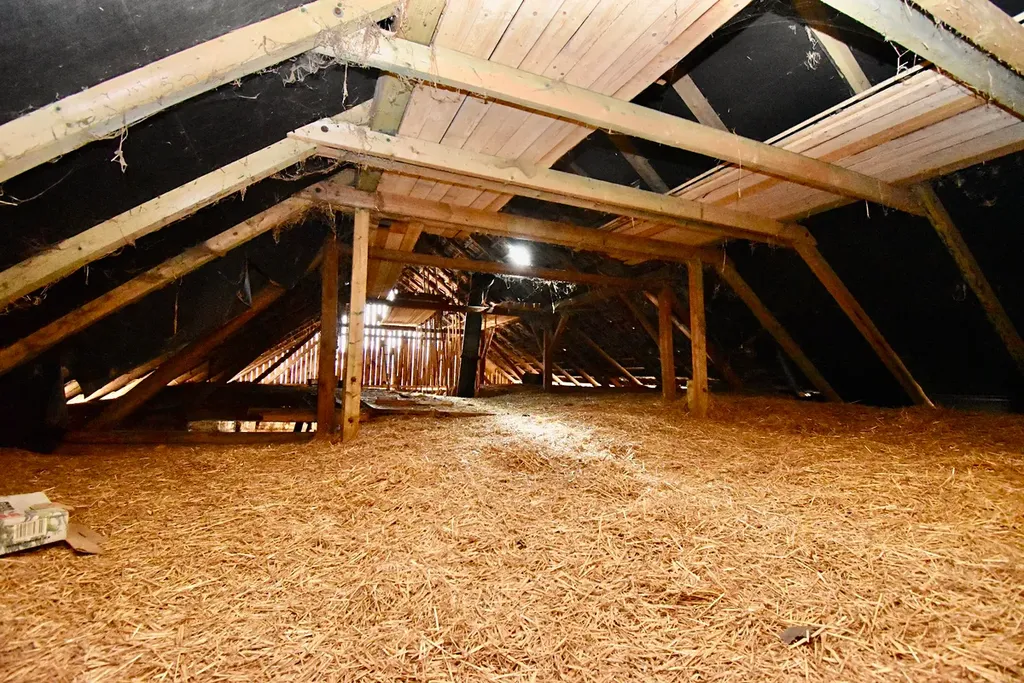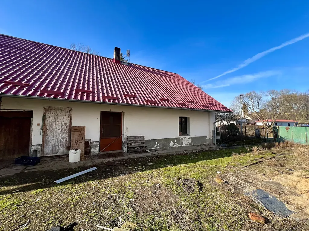 Velkou předností této nemovitosti je nová plechová střecha včetně krovů a latí nad obytnou částí domu, kde je zároveň možné vybudovat krásné obytné podkroví. Výška střechy je dostačující.