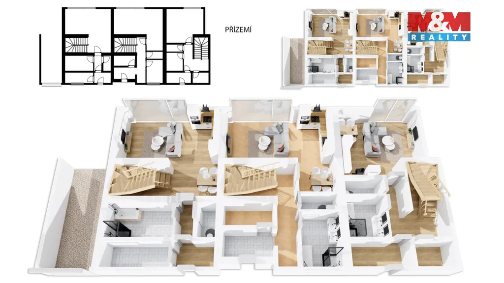 Nabízíme k prodeji prostorný byt 4+kk o ploše 110 m² s vlastní zahradou 120 m² v obci Obrataň. Byt je součástí nově zrekonstruovaného domu, ve kterém vznikly celkem tři bytové jednotky – každá s vlastním vstupem a oddělenou zahradou. K bytu náleží 1,5 parkovacího stání. Přízemí: vstupní chodba, technická místnost, prostorná koupelna, samostatné WC, spíž, obývací pokoj propojený s kuchyní a jídelním koutem se vstupem přímo na zahradu. 1. patro: dva samostatné pokoje, koupelna s WC a ložnice s vlastní šatnou. Součástí ceny je dokončení dle přání kupujícího v hodnotě 300.000 Kč, zateplení + fasáda, díky čemuž si nový majitel může přizpůsobit bydlení podle vlastních představ. Byt je napojen na obecní vodovod, kanalizaci, elektřinu i plyn. Vytápění zajišťuje plynový kotel s rozvodem do teplovodního podlahového topení, což garantuje komfortní a úsporný provoz. Pokud hledáte moderní bydlení s výbornou dostupností do Tábora nebo na dálnici D1, jedná se o ideální volbu.