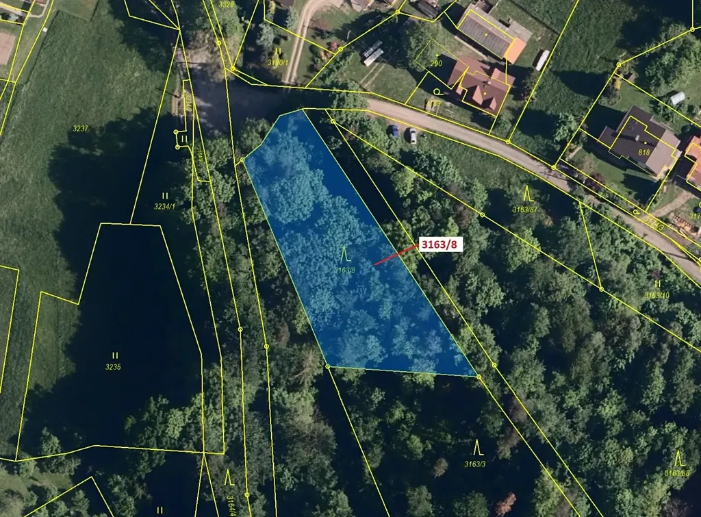 Lesní pozemek o výměře 1981 m2, parcelní číslo 3163/8, podíl 1/1, katastrální území Oldřichovice u Třince, obec Třinec, obec s rozšířenou působností Třinec, okres Frýdek-Místek, Moravskoslezský kraj.