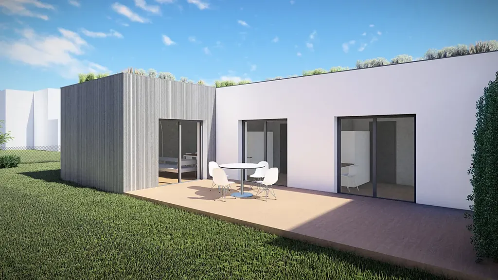 Centrem domu je velký obývací pokoj s kuchyňským koutem a přímým vstupem na terasu, která se stane ideálním místem pro rodinnou relaxaci i letní posezení. Hlavní ložnice poskytuje soukromí rodičům, dva dětské pokoje jsou navrženy s ohledem na pohodlí a dostatek světla. Samostatná koupelna, WC a technická místnost zajišťují plnou funkčnost každodenního života.
