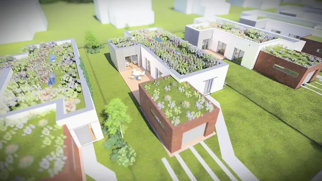 Dům je vybaven moderními technologiemi, které zajišťují nízké provozní náklady a dlouhodobý komfort: tepelné čerpadlo, podlahové vytápění, rekuperace vzduchu a zelená střecha, která podporuje příznivé klima i estetický vzhled. V ceně je navíc zahrnuta fotovoltaická elektrárna a kuchyňská linka. Orientační měsíční náklady čtyřčlenné domácnosti se pohybují okolo 5 700 Kč.