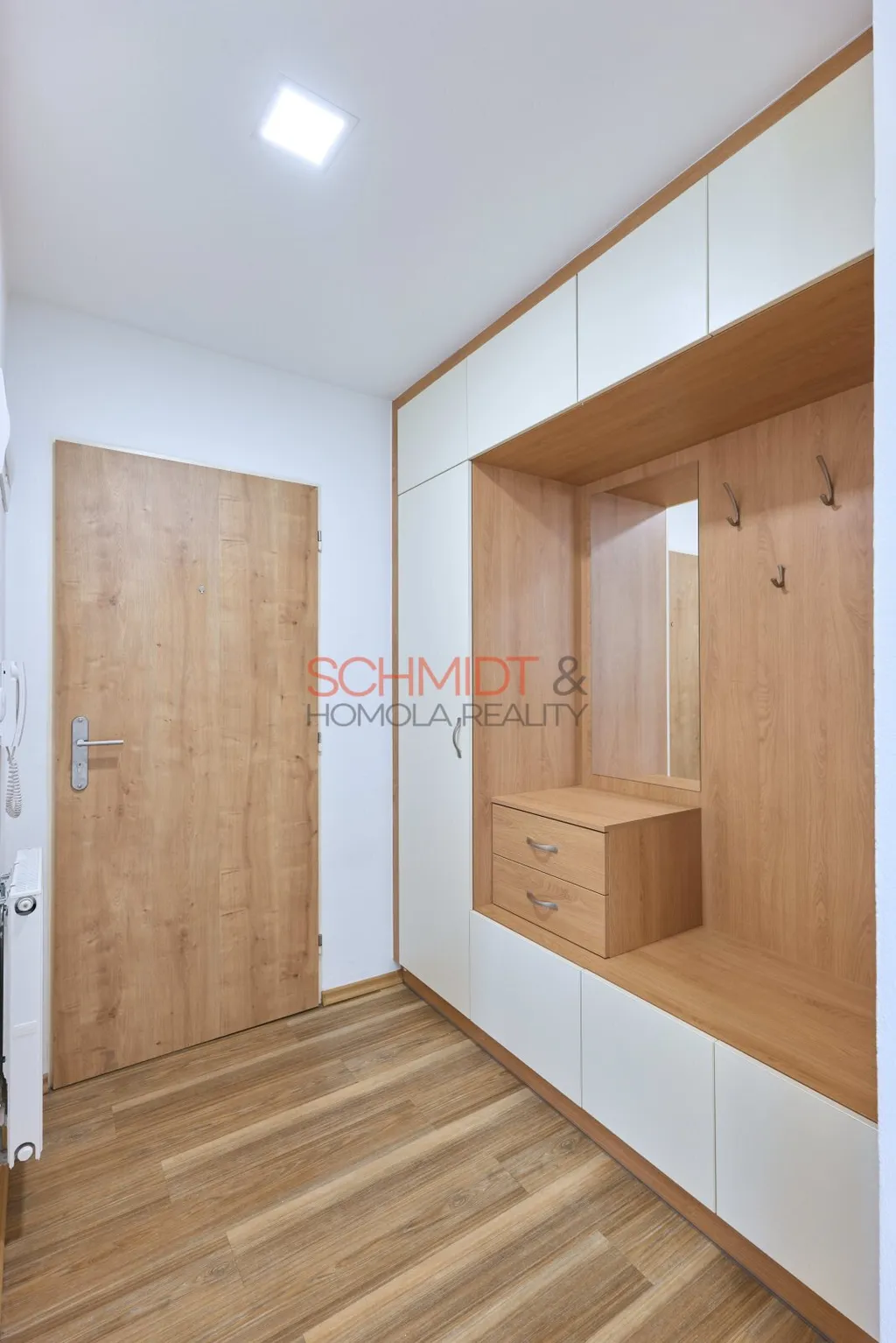 Součástí bytu je kuchyňská linka, koupelna se sprchovým koutem a sklepní kóje nacházející se v přízemí. Vytápění i ohřev vody zajišťuje společná kotelna, k případnému chlazení je zde také klimatizace. Bytový dům je v energetické třídě „A“, díky čemuž jsou náklady na vytápění zcela minimální. Užitná plocha bytu je 32,3 m², nad rámec této výměry je dále balkon a již zmíněná sklepní koje.