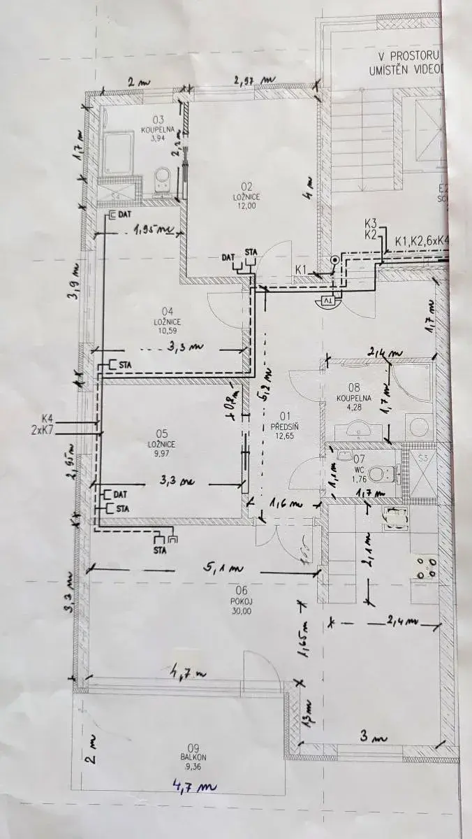 Podlahová plocha: 85 m2 byt + 9 m2 balkón + cca 3 m2 sklep + garážové stání