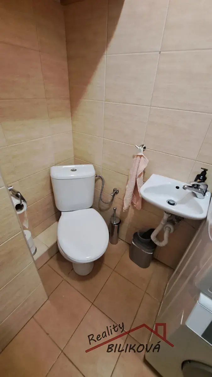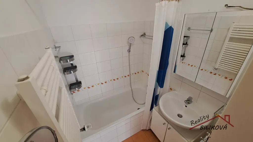 Byt je vytápěn kotlem pro celý dům. Nízké měsíční náklady.