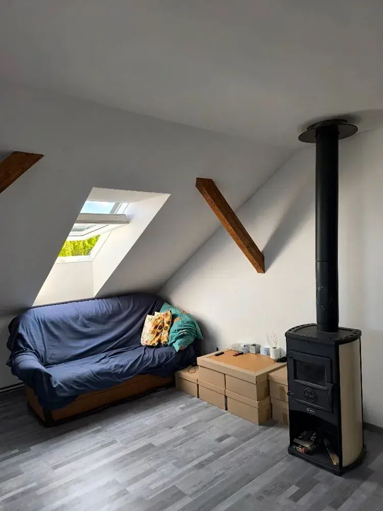 Nabízíme k prodeji novostavbu podkrovního bytu o dispozici 2+kk o podlahové ploše 69 m², který se nachází ve 2. patře bytového domu. Byt prošel kolaudací v roce 2021 a představuje tak moderní bydlení se zárukou kvality a nízkých provozních nákladů. Tato bytová jednotka byla navržena s důrazem na vysokou energetickou efektivitu a akustický komfort. Stěny i podlahy disponují nadstandardní 30cm izolací z vaty. Podlahy jsou tvořeny tlumicí kročejovou izolací (20mm), mirelonem a plovoucí podlahou, položenou na latích a dvou vrstvách OSB desek (25 mm). K dobré izolaci přispívají také třískelná střešní okna. Vstupní zeď do bytu tvoří masivní 30cm Ytong. Příčky v bytě jsou sádrokartonové. Bezpečnost zajišťují protipožární kovové vstupní dveře. Vytápění je řešeno elektrokotlem s radiátory, který je možné doplnit krbovými kamny. Do domu je zaveden také plyn. Pravidelné měsíční náklady - fond oprav 1000,-Kč/měs., zálohy na elektřinu 3700,-Kč/měs., voda1000,-Kč/měs. Dům je po částečné revitalizaci. Byly vybudovány nové odpadní stoupačky. V roce 2020 byla udělána nová střecha s betonovou taškou, novými svody a kominickou lávkou. Společenství vlastníků má v dohledném časovém horizontu v plánu zateplení fasády celého bytového domu. K bytu náleží prostorný sklep o velikosti 8–10 m². Velkou výhodou je možnost užívání pozemku u domu (zahrady). Pro bezproblémový příjem signálu je k dispozici společná TV anténa (pro 3 byty) a internet O2/pevná linka. Parkování je komfortně vyřešeno, k dispozici jsou až 4 parkovací místa přímo u domu. Schodiště do patra je kovové s dřevěnými nášlapy. Město Hořovice disponuje veškerou občanskou vybaveností. Výborná dostupnost dálnice D5 (Praha - Plzeň) - exit 34 - 3km.
