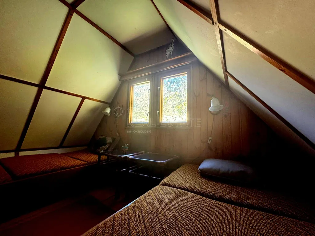 Spodní část je zděná, horní dřevěná, vše ve velmi dobrém stavu. Objekt je ihned připraven k rekreačnímu užívání. (V současnosti není určen k celoročnímu bydlení, po úpravách je tato možnost reálná.) Součástí je kryté a uzamykatelné venkovní posezení.