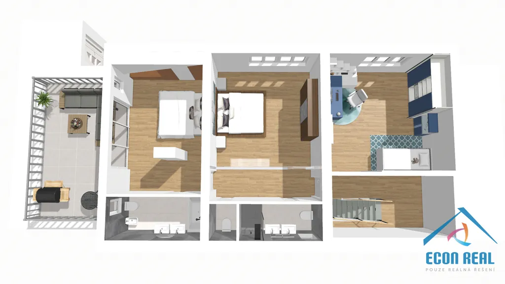 Hledáte nový domov s dostatkem světla i prostoru? Požadujete bezpečné parkování pro svého miláčka a velkou zahradu? Zavřete oči a představte si: Je sobotní ráno. Sluneční paprsky pronikají velkými francouzskými okny přímo do vaší ložnice. Cítíte teplo slunce na tváři. Vstáváte, otevíráte dveře na terasu a vdechujete svěží vzduch. Žádný hluk. Žádné sirény. Žádní sousedé za stěnou.