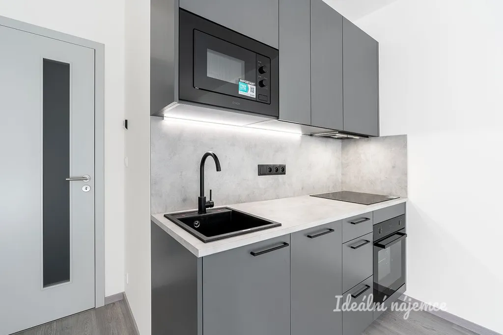 Nabízíme k dlouhodobému pronájmu zcela nový a prakticky řešený byt 1kk o velikosti 32m², situovaný v moderním bytovém domě s výtahem. K bytu náleží nádherný balkon s výhledem do vnitrobloku a prostorný sklep.