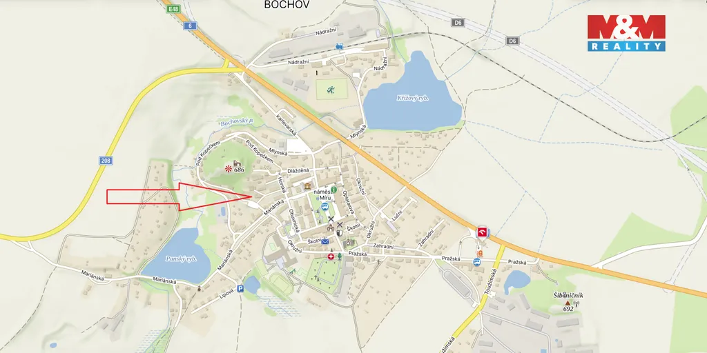 Rodinný dům se nachází v klidné části města Bochov, zhruba 15 km jihovýchodně od Karlových Varů, s dobrou dostupností po silničním tahu Praha–Karlovy Vary. Jedná se o dvoupodlažní dům, který je vytápěn krbovými kamny a je napojen na elektřinu, obecní vodovod i kanalizaci. Plyn je přiveden na hranici pozemku, což umožňuje budoucí napojení na plynové vytápění dle potřeb nového majitele. Bydlení je možné pouze v horním patře, které disponuje kuchyní, třemi prostornými pokoji a koupelnou s vanou a WC. Ve spodní části si můžete vybudovat další bytovou jednotku o dispozici 2+kk. Dům je vhodný jak pro trvalé bydlení, tak rekreační účely, s potenciálem úprav podle vlastních představ. Uchvátí Vás také krásný vyhled do krajiny a na zříceninu hradu Hartenštejn.