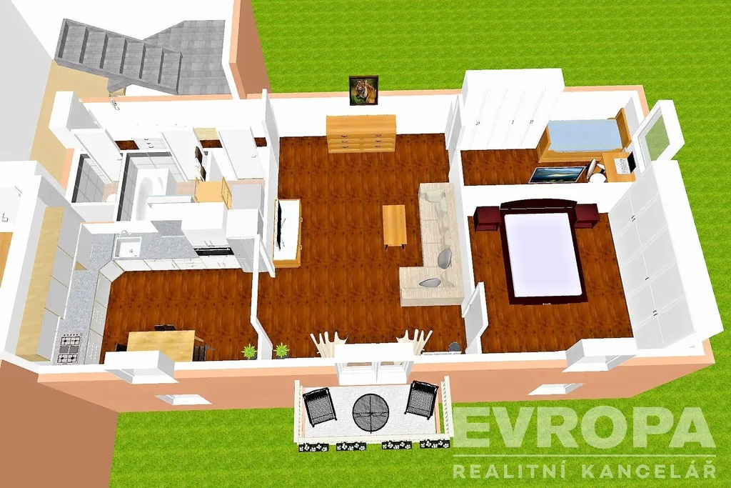 Příjemným doplňkem je balkon orientovaný do klidného okolí, sklepní koje a vlastní venkovní parkovací místo přímo před domem, které výrazně zpříjemňuje každodenní fungování domácnosti.