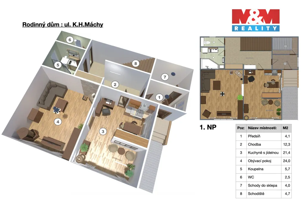 Nabízím k prodeji útulný rodinný dům s užitnou plochou 246 m2 v klidné části města Jirkov. Dům nabízí dostatek soukromí a pohodlí pro větší rodinu a je také vhodný k dvougeneračnímu bydlení. Vytápění je řešeno plynovým kotlem a v patře elektickými tepelnými fóliemi. V přízemí jsou krbová, kachlová kamna s teplovodním výměníkem, které dokáží navodit příjemnou atmosféru a zároveň zajistit příjemné teplo domova. Dům prošel v roce 2021 rekonstukcí. Je zde i mimo jiné nová mnichovská fasáda, která je zateplená. Skládá se ze dvou nadzemních podlaží, půdního prostoru, který vybízí k rozšíření bydlení a je podsklepený. Okolí domu tvoří upravená zahrada s jezírkem a kombinací zatravněné plochy, živých plotů, keřů a záhonů. Součástí zahrady je dřevěný domek na uskladnění nářadí a zahradního nábytku. Dům je zabezpečený monitorovacím systémem a pohybovými čidly. Neváhejte a nenechte si ujít tuto jedinečnou nemovitost a zavolejte si o prohlídku. S financováním můžeme pomoci.
