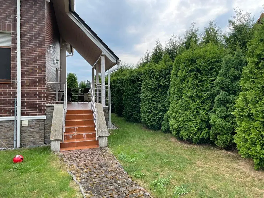 Na travnatém pozemku se nachází letní veranda s grilem.