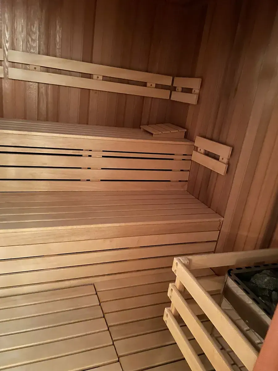 ✔ V přízemí se nachází lázeňský komplex se saunou, vířivkou, odpočinkovou místností s barem.