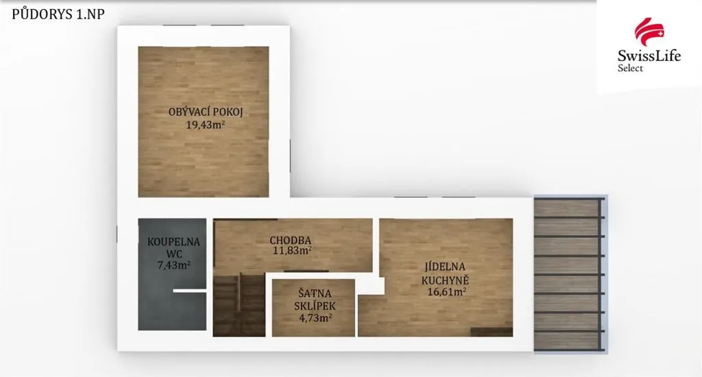 V patře vás potěší velkorysá ložnice o ploše cca 27 m, světlý dětský pokoj o velikosti přibližně 20 m a druhá koupelna s vanou a WC. Dům doplňuje balkon (cca 6 m), terasa o výměře přibližně 15 m ideální pro letní posezení, sklep (cca 5 m) a vedlejší stavba o velikosti cca 45 m s možností úpravy na garáž pro dvě auta. Parkování je možné přímo před domem.