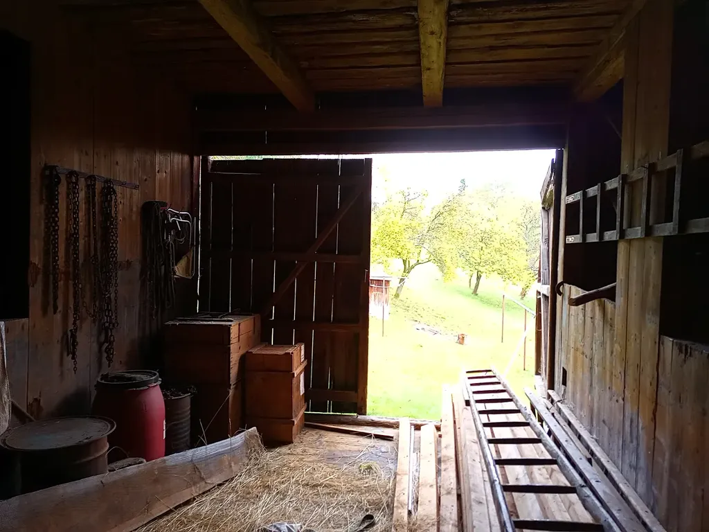 Dům je tak zděný z kamenného zdiva u hospodářské části a sklepa, cihelnou obytnou částí a využitelným podkrovím včetně podstřeší. Vstup do domu je z komunikace do středové chodby ukončené suchým záchodem a vstupem do zahrady. V přízemí je napravo větší kuchyň s kamny na tuhá paliva a přívod vody s ele.ohřevem. Nalevo jsou dvě na sebe navazující místnosti sloužící jako ložnice, obývací pokoj. V druhé části chodby je napravo vstup do velkého klenutého chléva se vstupem vedle domu na parkoviště a nalevo pak dvě menší na sebe navazující místnosti. V podstřeší je velký půdní prostor s možností vestavby dalších bytových prostor. Z chodby je vstup na zahradu s navazujícím vstupem do sklepa pod stodolou, který je kamenný s klenutým cihelným stropem v převážné části. Stodola je pak provedená z dřevěné konstrukce osazené na zděné pilíře.