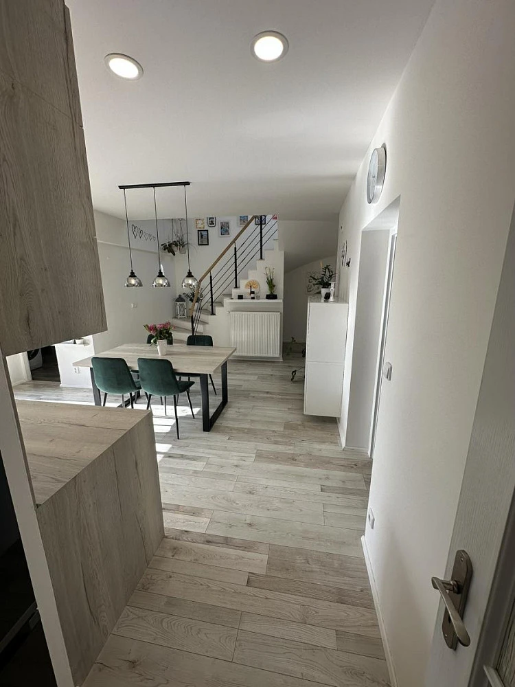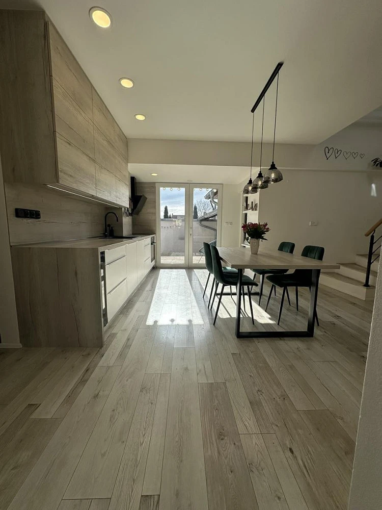 Velkou výhodou tohoto domu je také moderně zařízená kuchyně s veškerými spotřebiči včetně parní trouby, indukční desky, myčky a menší vinotéky. V domě vládne příjemná atmosféra a díky tomu se tu budete cítit jako doma.