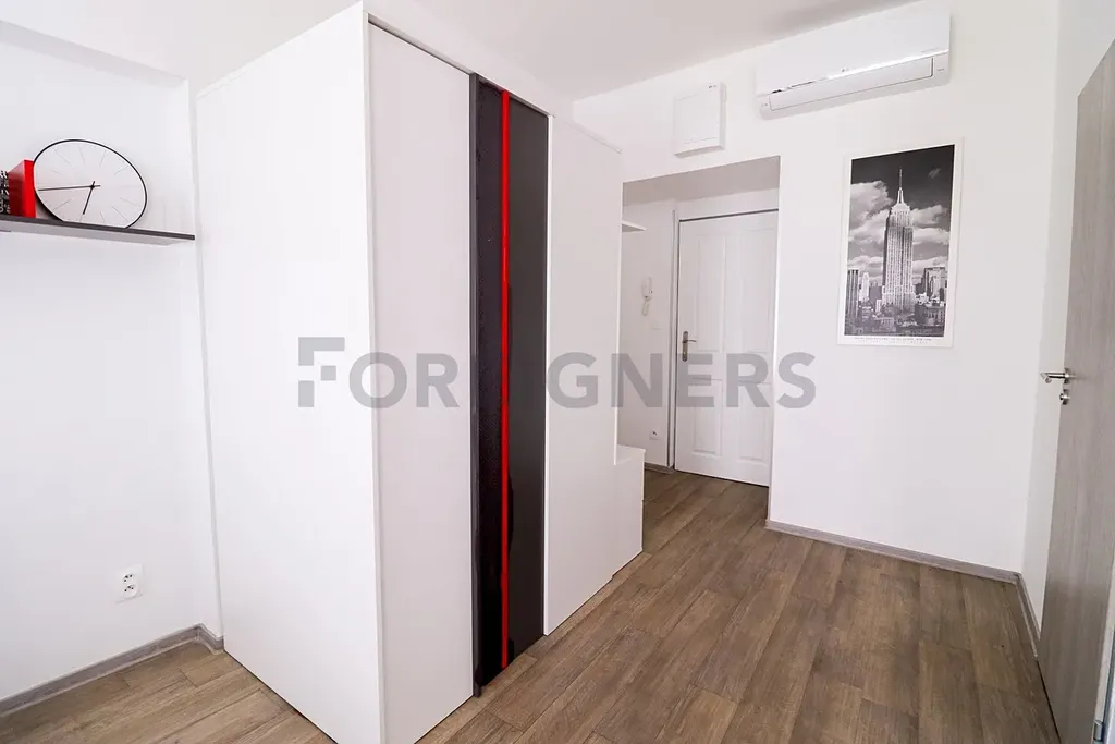 Při vstupu do bytu se nachází praktická předsíň s vestavěným úložným prostorem a věšákovou stěnou. Také je zde vstup do praktické mini šatny.