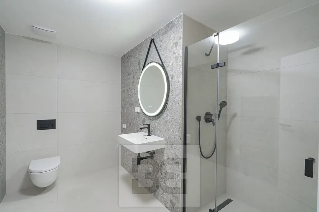 Nabízíme k pronájmu moderní prostorný byt o dispozici 1+kk a o výměře 43 m² s velkou terasou kombinovanou se zahradou o výměře 26 m².