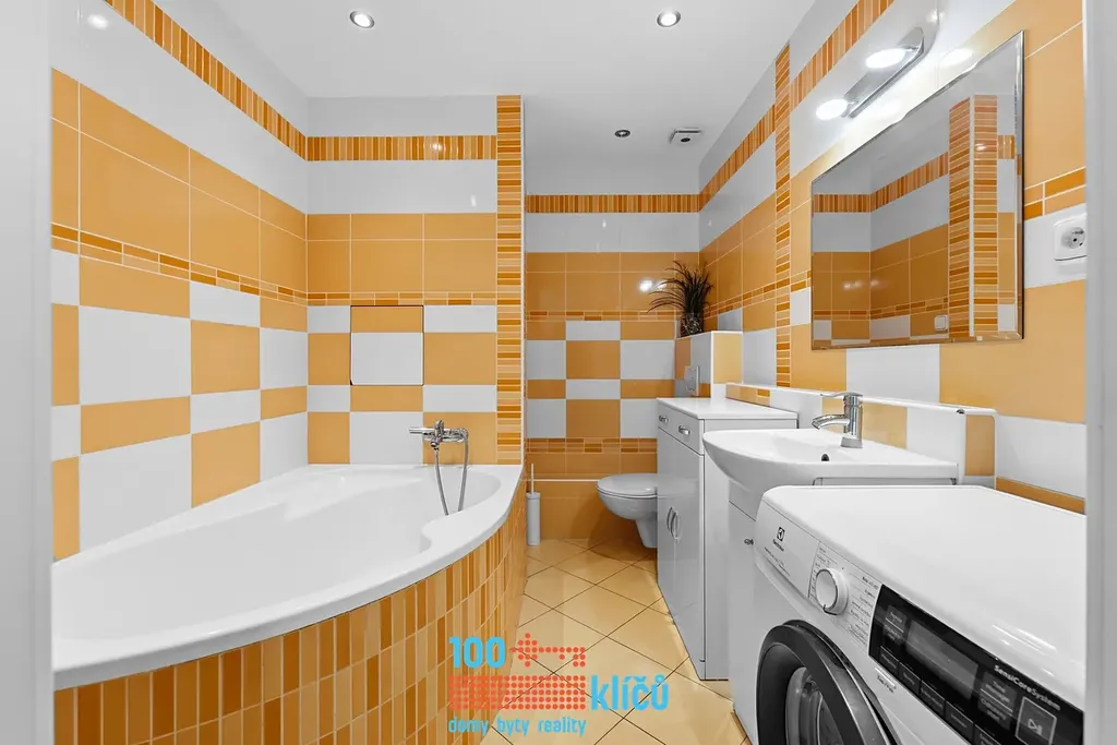 Jádrem bytu je prostorný obývací pokoj s kuchyňským koutem o výměře 22,5 m². Z obývacího pokoje se vchází do prostorné zasklené lodžie. Ložnice má velké okno, orientované na východ. Kuchyně je vybavena myčkou a troubou značky Bosch, mikrovlnnou troubou, objemnou ledničkou a indukční deskou na vaření. V koupelně se nachází rohová vana a pračka Electrolux s kapacitou pro 7 kg prádla. K bytu patří sklep. V domě je společná kolárna.