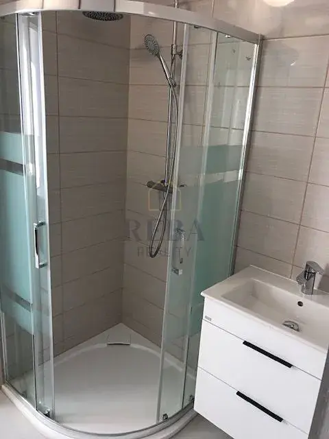 Byt je částečně zařízený, a to včetně kuchyňské linky a pračky. Koupelna je vybavena sprchovým koutem.