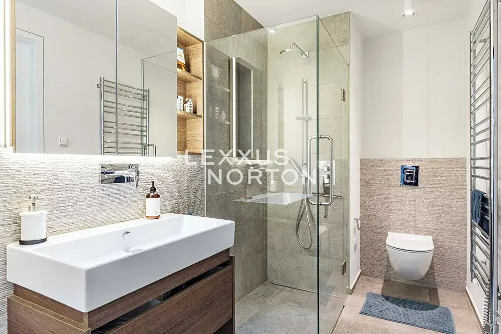 V suterénu je vybudován samostatný apartmán s kuchyňskou linkou a koupelnou, se vstupem do zahrady – ideální pro hosty, chůvu či vícegenerační bydlení. Dále zde naleznete technické zázemí, komory a přímý vstup do garáže s vyhřívaným vjezdem a dvěma nabíjecími stanicemi pro elektromobily.
