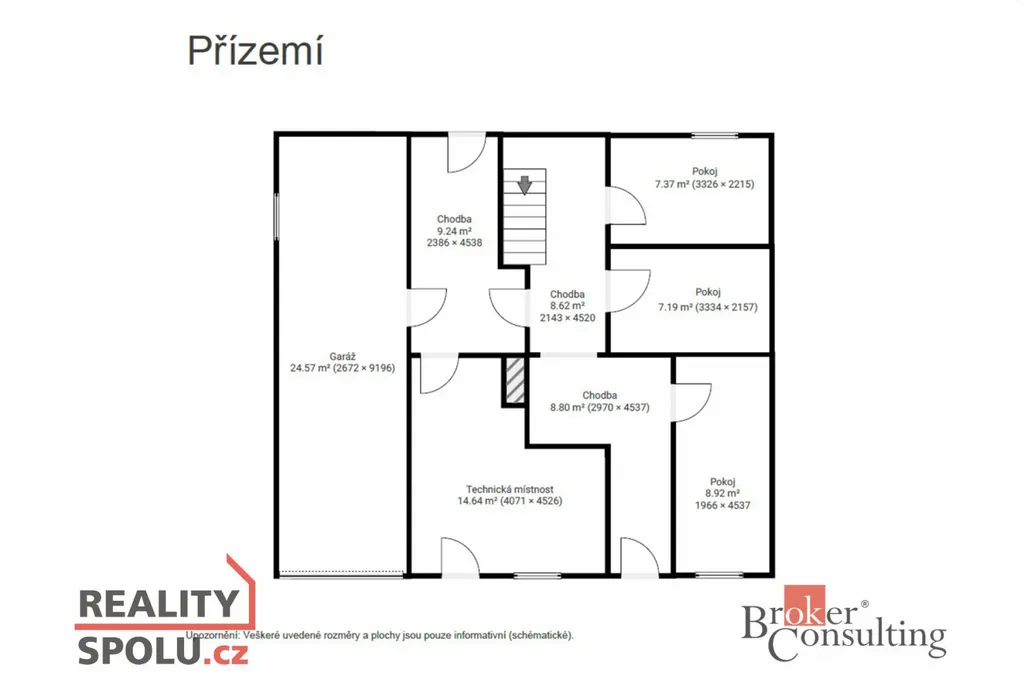 Dispozičně dům poskytuje dostatek soukromí i pro větší rodinu. V přízemí najdete prostornou garáž pro dvě vozidla, tři menší místnosti využitelné jako hobby prostor či pracovna, praktickou místnost pro ukládání potravin a technické zázemí. Hlavní část domu se pak rozkládá v patře, kde je velký obývací pokoj přes který se přechází do kuchyně. Také odtud vede vstup na prostorný balkon vybavený novým a voděodolným pryskyřično-pískovým kobercem. Také se na tomto patře nachází dvě ložnice a další dva samostatné pokoje. Koupelna je vybavena vanou se zástěnou pro pohodlné sprchování a dvěma umyvadly, toaleta je řešena samostatně. Pokud by vám přesto prostor nestačil, nevyužitá půda pod střechou nabízí skvělý potenciál k případné další vestavbě.