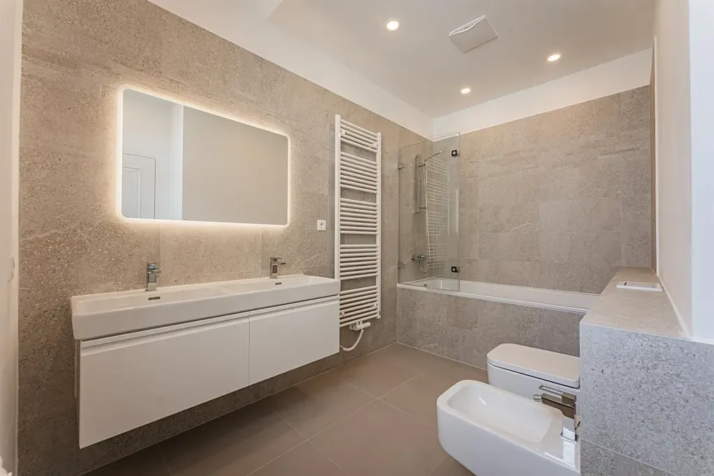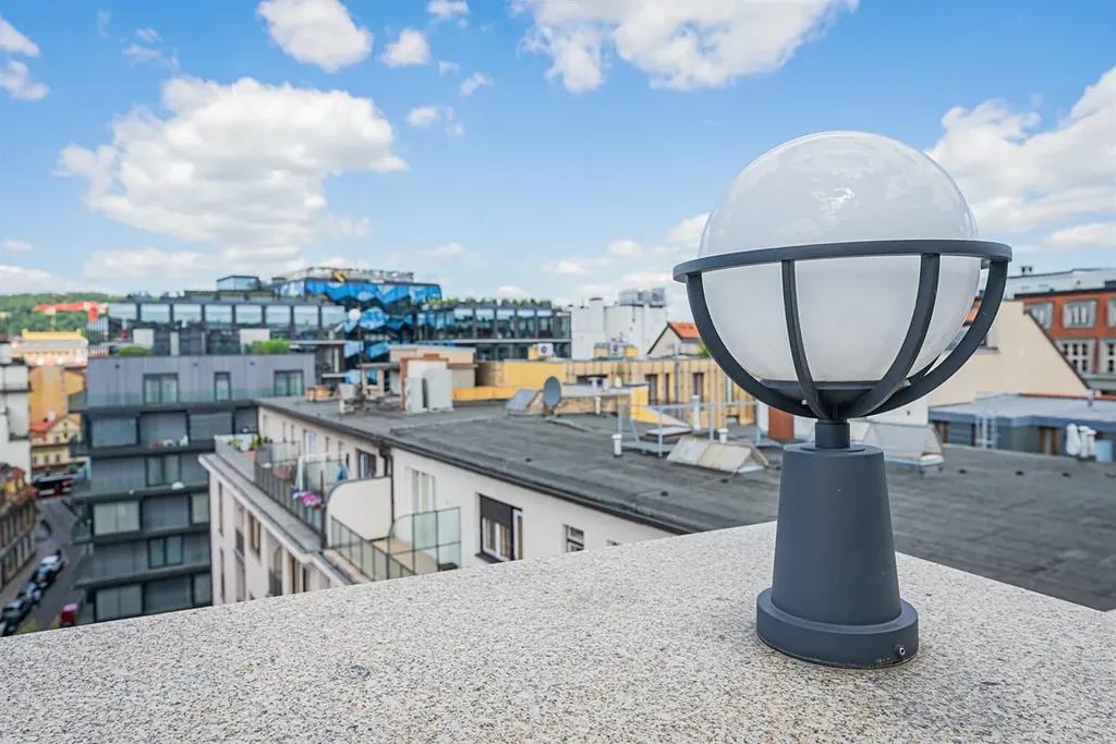 Reprezentativní prostorný byt 3+1 (2ložnice, 2 koupelny), s podlahovou plochou 117 m2 a s prostornou terasou 57 m2, která nabízí hezké výhledy. Byt je situovaný v posledním 6. patře kompletně zrekonstruovaného domu se zachovalými původními art deco prvky. Výtah jede přímo do bytu.