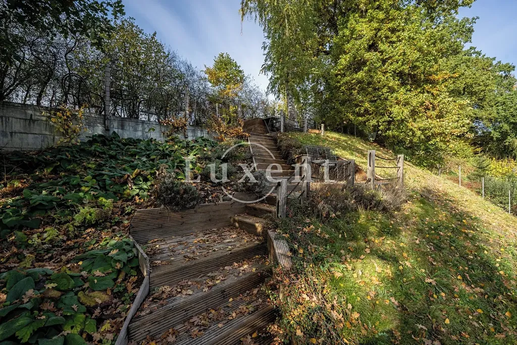 V zadní části domu je druhá terasa se stíněním, vhodná například ke grilování a na ní navazuje volný prostor zahrady. Svah u zahrady je využitý jako bezúdržbová část zeleně a schodiště nás dovede do horní části, kde se nachází ohniště s překrásným výhledem do okolí.