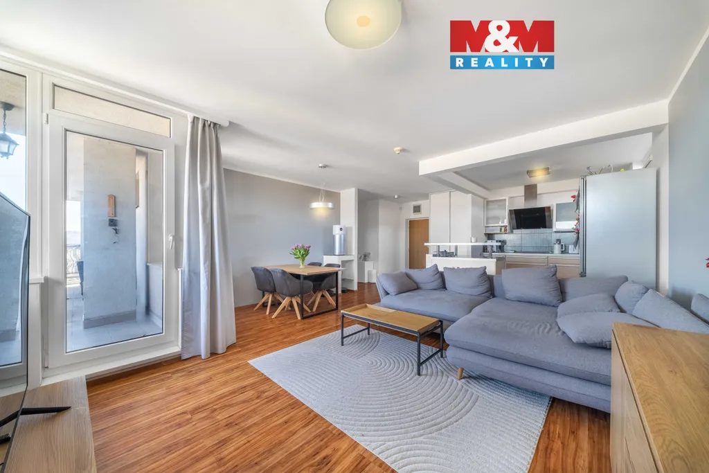 Prostorný a světlý byt o užitné ploše 89 m² se nachází v 6. nadzemním podlaží a zaujme nejen svou dispozicí, ale i příjemnou atmosférou a velmi dobrým stavem. Dominantou bytu je velkorysý obývací pokoj s kuchyňským koutem a přímým vstupem na slunnou terasu o rozloze 20 m².