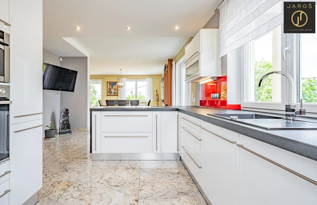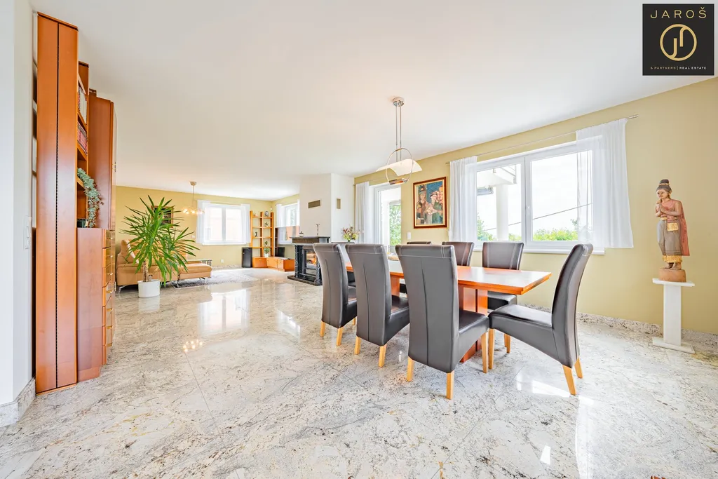 Dům byl postaven v roce 2014 z kvalitních materiálů a nabízí vše, co si můžete přát od moderního rodinného bydlení – prostor, soukromí a důraz na detail. Celková užitná plocha činí 411 m², pozemek má 1 433 m², z toho samotná zahrada zabírá 1 193 m². Přestože se jedná o velkoryse řešený dům, jeho provoz je díky moderním technologiím velmi úsporný – budova spadá do energetické třídy B (velmi úsporná). Součástí je také samostatně stojící dvojgaráž s dílnou o výměře 48 m², kde je připraveno připojení pro nabíjení elektromobilu.