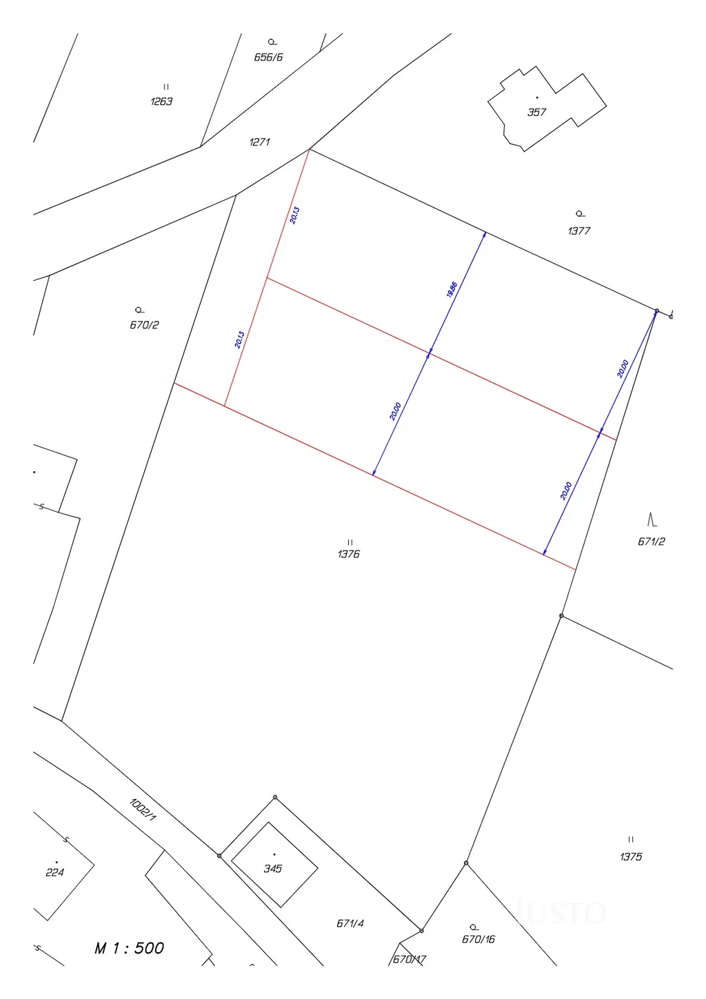 Aktuálně má pozemek výměru 6 162 m², přičemž se nabízí možnost odkupu části o výměře cca od 800 m² do 3 000 m² (konkrétní velikost bude stanovena po vzájemné dohodě s prodávajícím a následném vyhotovení geometrického plánu). Předběžný návrh dělení najdete ve fotogalerii inzerátu.